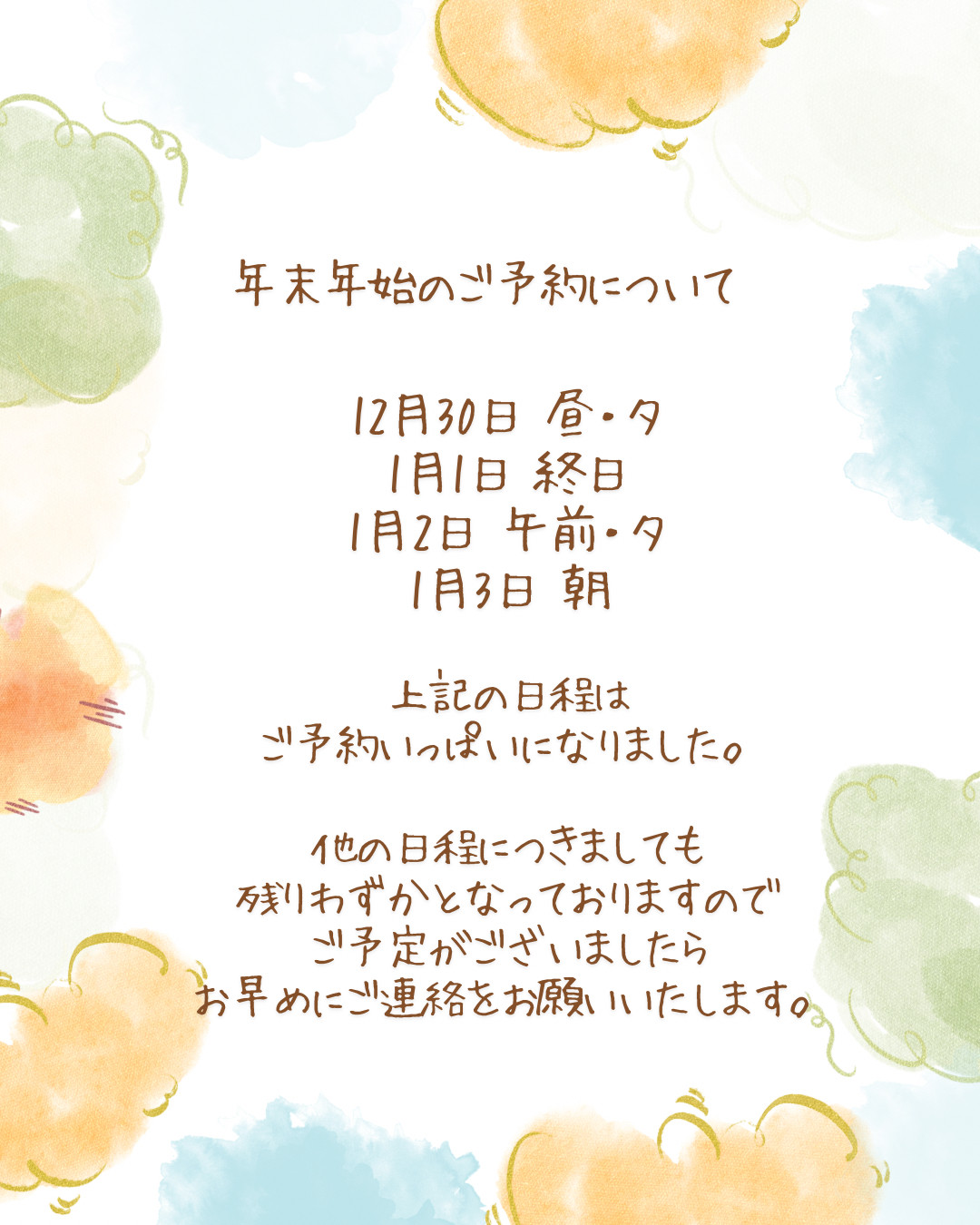 年末年始のご予約について